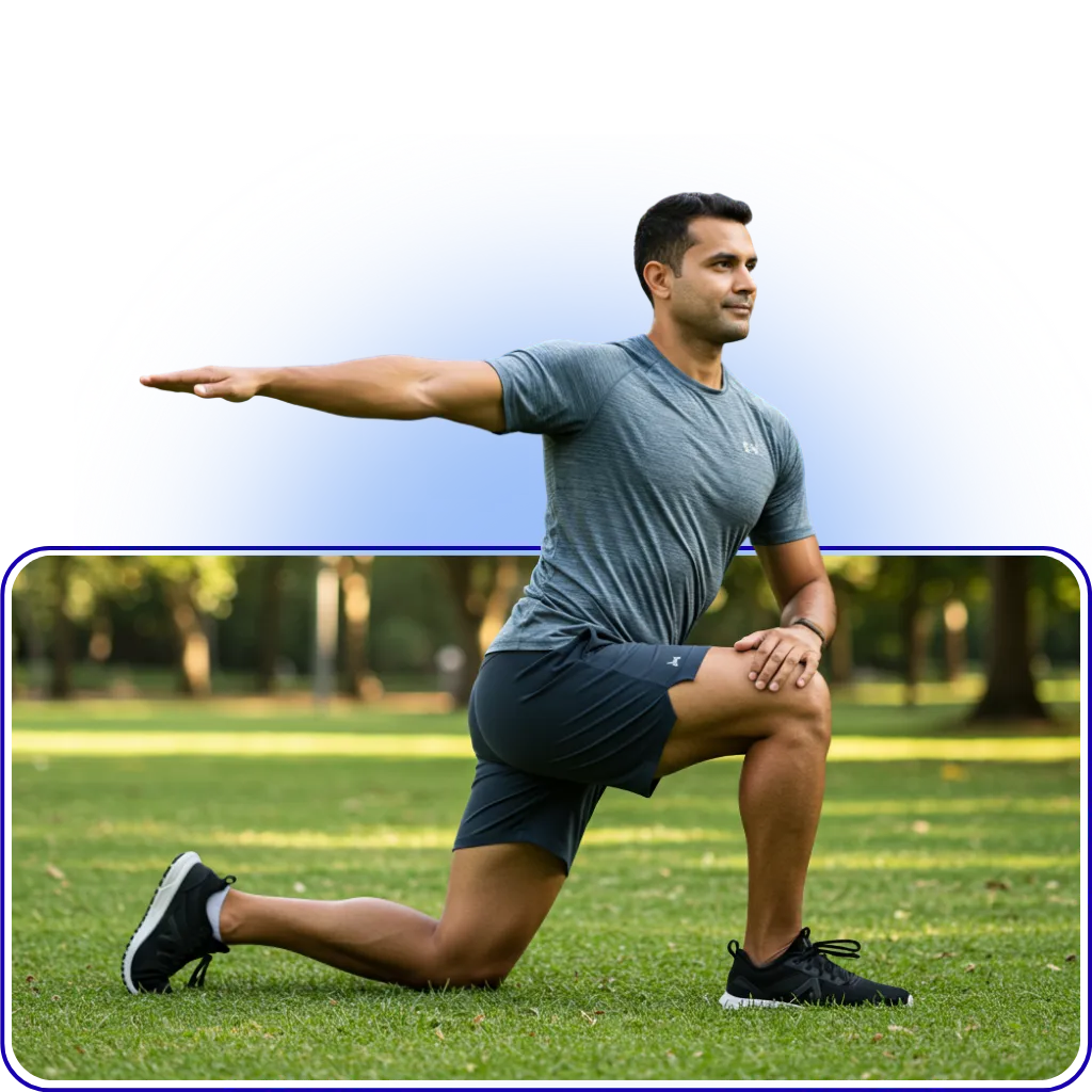 Realizamos exercícios leves de mobilidade articular, como movimentos lentos e alongamentos suaves, para melhorar a flexibilidade e eliminar a rigidez.